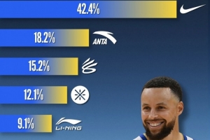 本赛季,库里有4成的场次穿的是耐克球鞋,超过2成穿的是李宁(包括韦德系列),接近2成穿的是安踏。