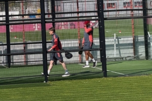 忙里偷闲!孔帕尼和弗罗因德今日训练后组队进行板式网球双打比赛
