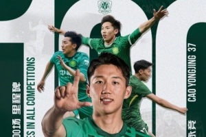 曹永竞替补登场,实现各项赛事代表北京国安第100次出场。